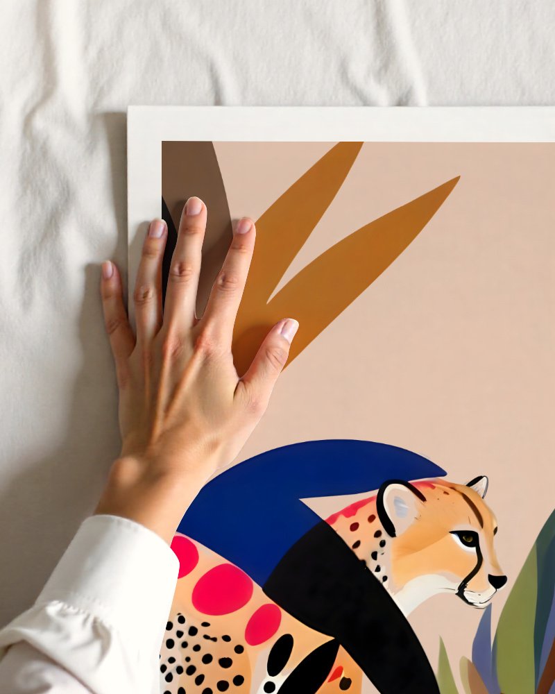 Immerse yourself in the vibrant world of the African savanna with this delightful art piece showcasing two cheetahs enjoying a playful picnic in the lush jungle. This art piece captures a moment of pure joy and camaraderie between these magnificent predators, inviting you to step into their world and imagine the delightful exchange taking place. “Cheetahs’ Jungle Picnic” brings along a sense of wonder, whimsy, and connection to the natural world.