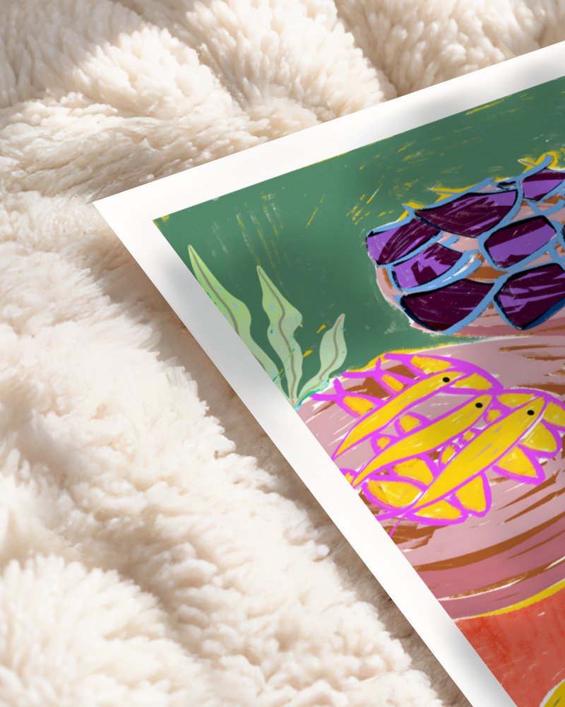 Shop Fish Market Eclectic bold Art Print, Canvas Print - available at 83oranges.com by artist Uma Gokhale India