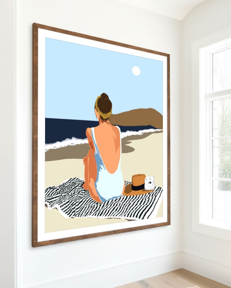 Capture the essence of a peaceful beach getaway with this seaside solitude artwork. The calm composition and soft color palette evoke a sense of relaxation and escape, creating a feeling of quiet contemplation and tranquility. Perfect for beach lovers and those who appreciate coastal landscapes & charm.