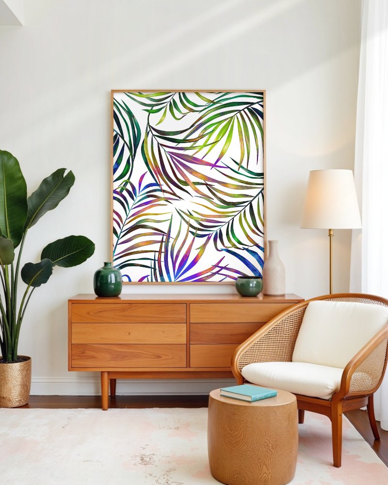 Bring instant joy and island energy into your space with this vibrant multicolor palm artwork. Bursting with sunlit hues and sweeping tropical shapes, this piece captures the carefree spirit of warm breezes, swaying palms, and endlessly bright skies. Whether styled in a living room, bedroom, or creative workspace, it adds an uplifting pop of color and a dose of wanderlust that inspires daily. Perfect for anyone who loves bold art, tropical vibes, and interiors that feel alive, fresh, and full of personality.