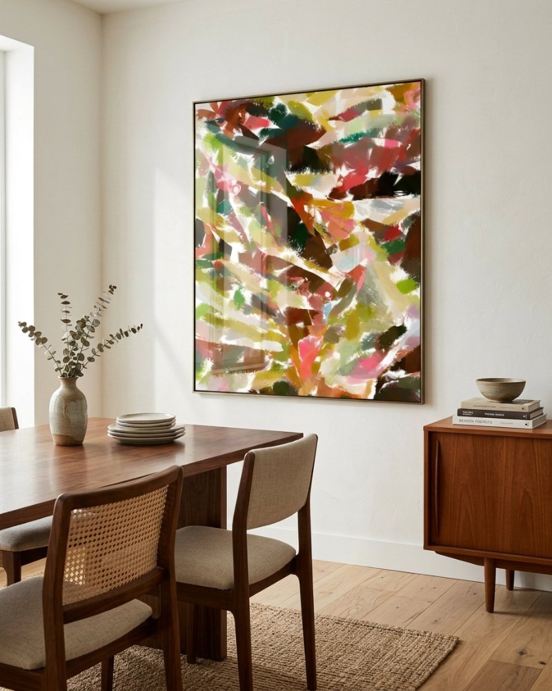 Absolutely stunning piece—the colors are rich and vibrant without feeling overwhelming, and the quality is truly exceptional. The large size makes such a beautiful statement in my space and instantly draws the eye. It arrived thoughtfully and securely packaged, which made the whole experience feel even more special.