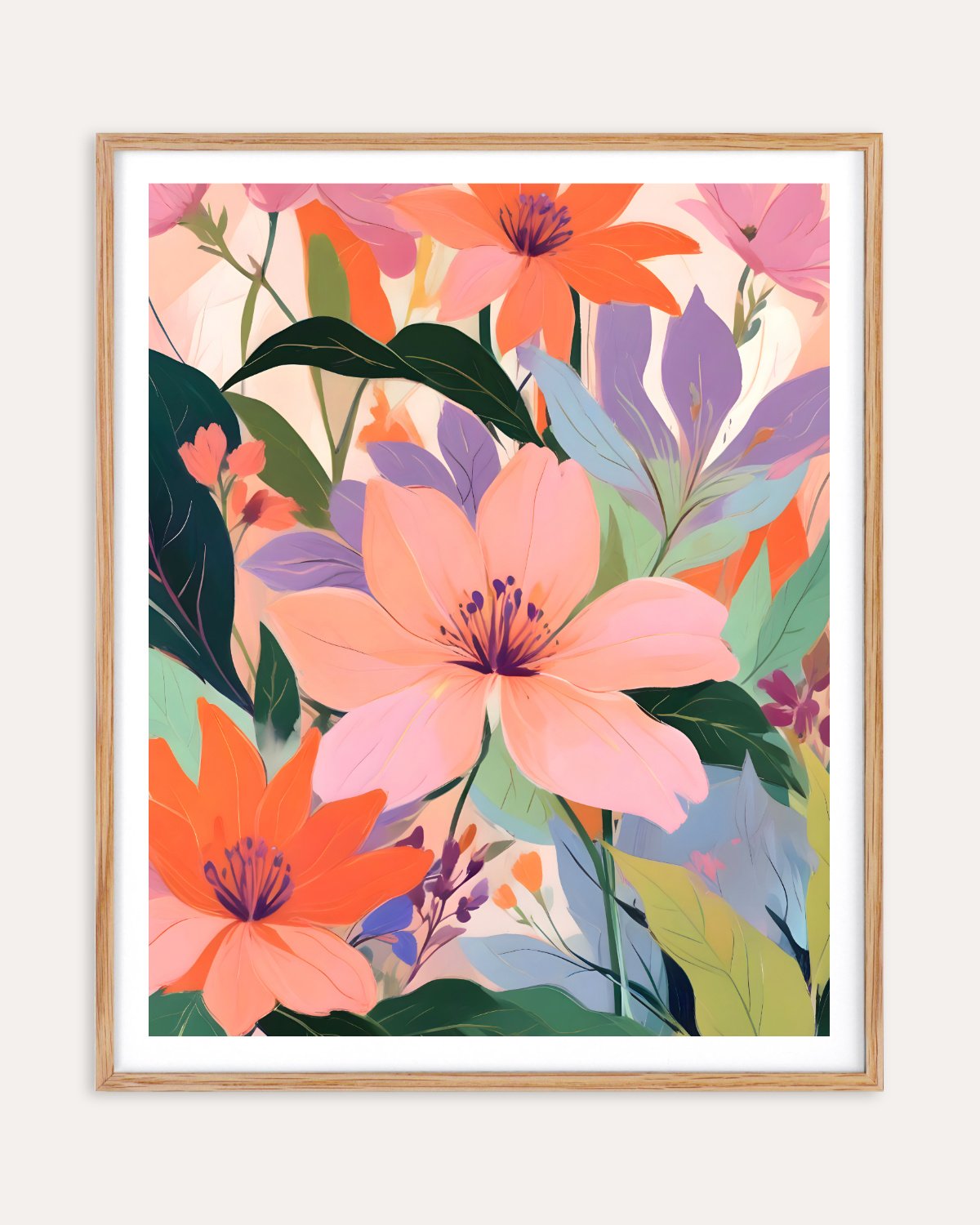 Featuring a harmonious blend of soft pinks, bold oranges, and lush greens, this piece captures the essence of a blooming garden in full splendor. The intricate details and rich colors create a sense of depth and movement, making it a perfect centerpiece, adding a touch of elegance and warmth to your space or design.