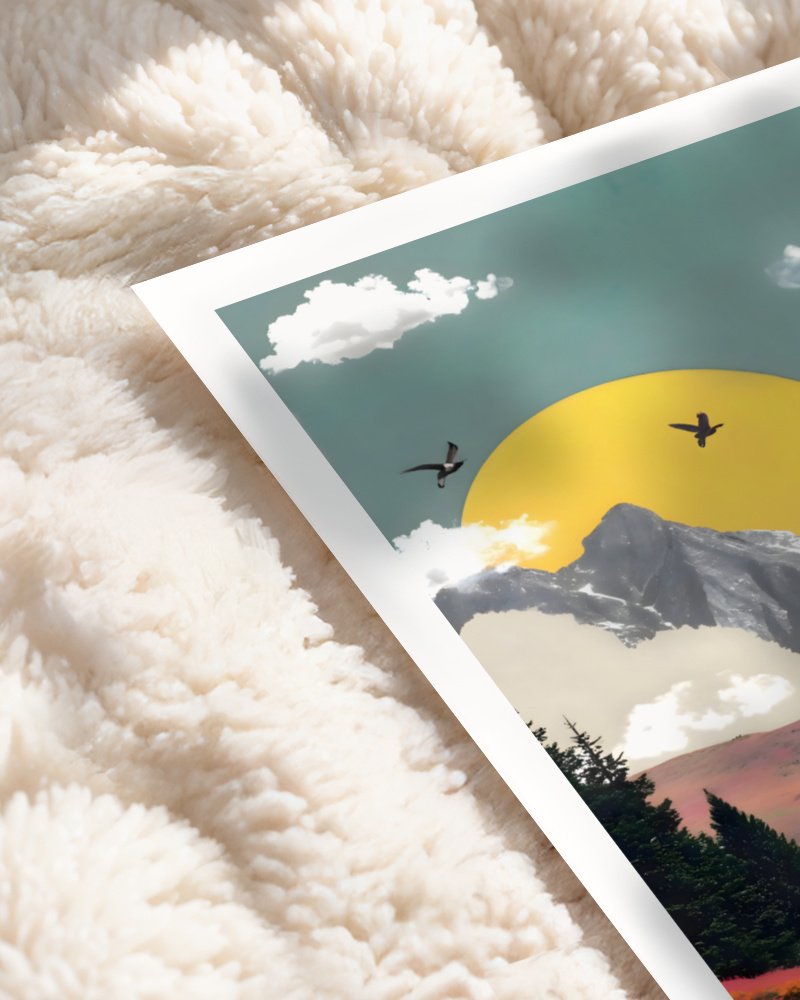 Shop whispers of the summit Dreamy Mountain Collage small batch Art Print, Canvas Print & Fabric Print - exclusively available at 83oranges.com by artist Uma Gokhale India