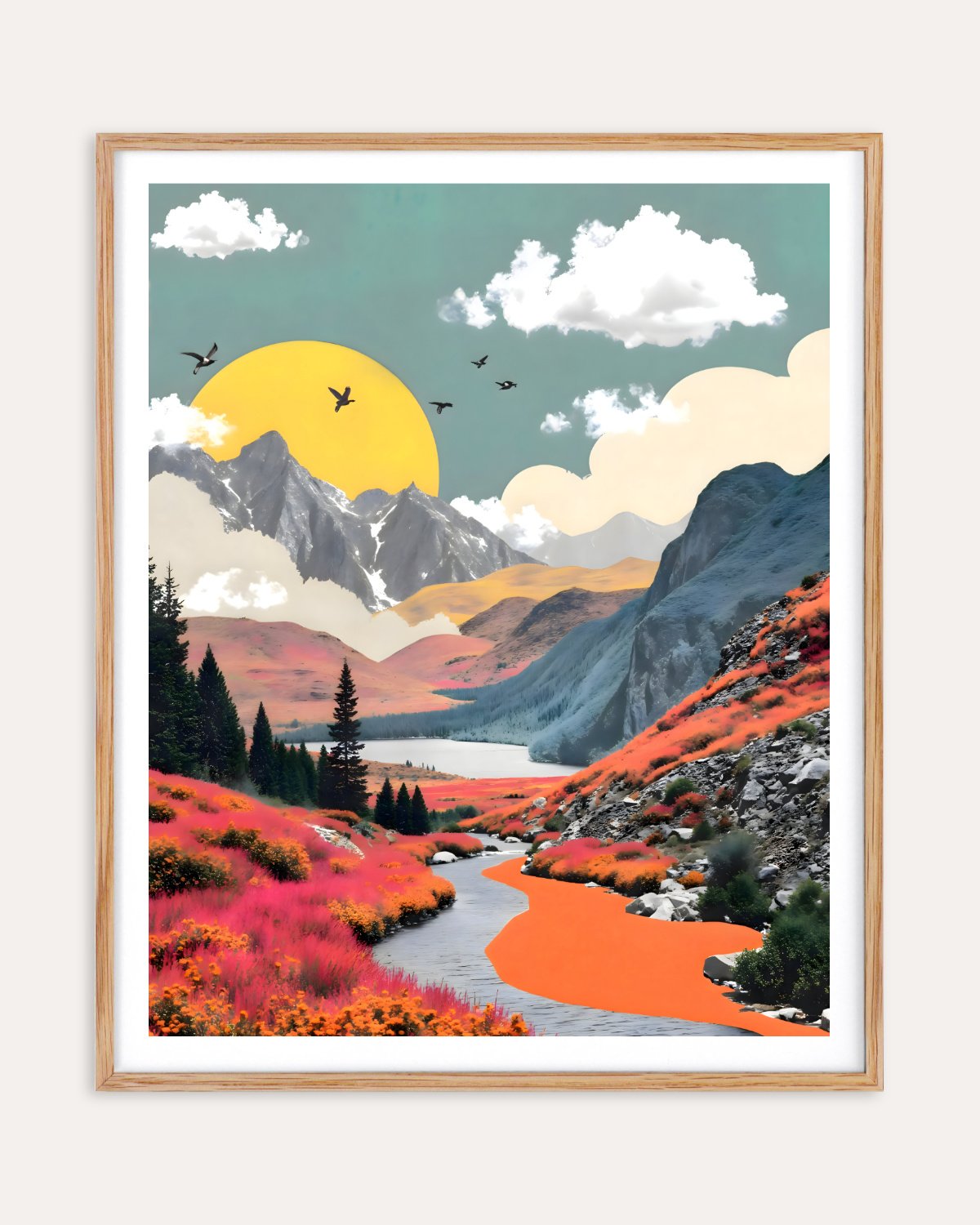 Shop abstract mountain collage nature landscape small batch graphic Art Print, Canvas Print, Commercial digital license & Instant download printable - exclusively available at 83oranges.com by artist Uma Gokhale India