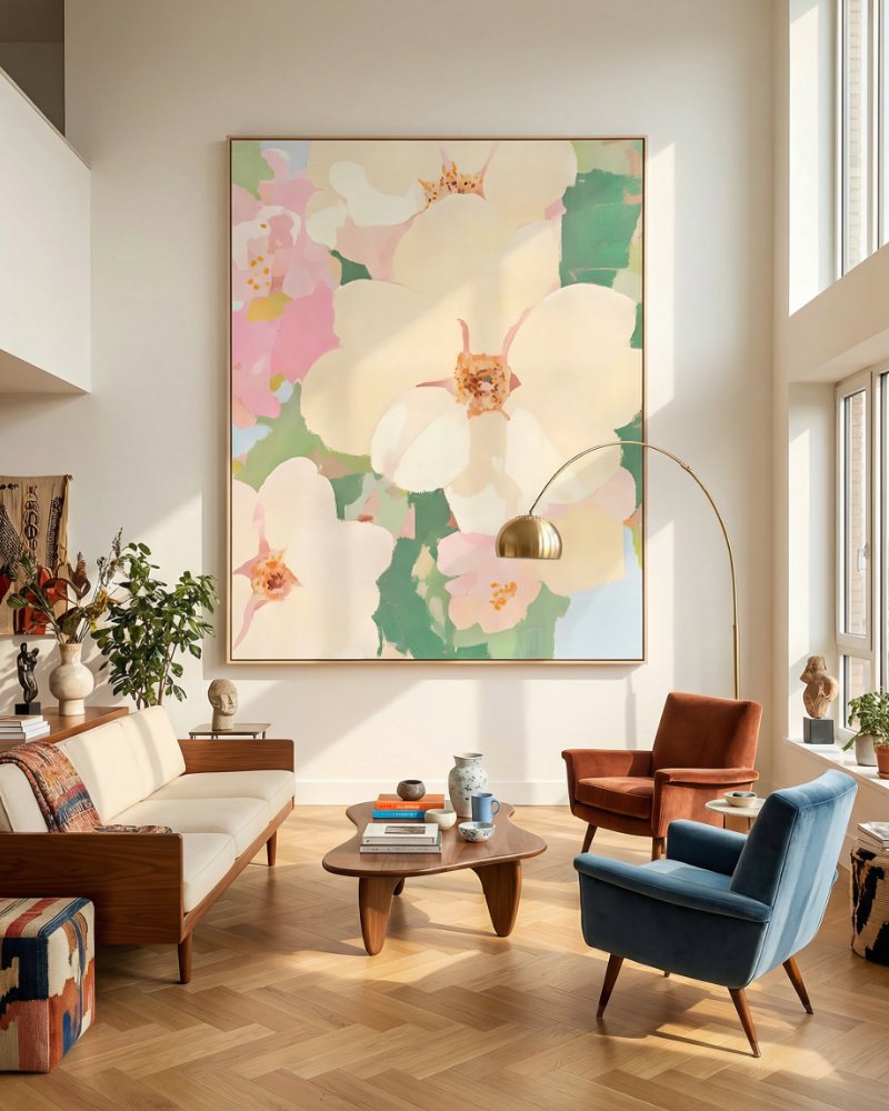 Absolutely stunning piece—the colors are rich and vibrant without feeling overwhelming, and the quality is truly exceptional. The large size makes such a beautiful statement in my space and instantly draws the eye. It arrived thoughtfully and securely packaged, which made the whole experience feel even more special.