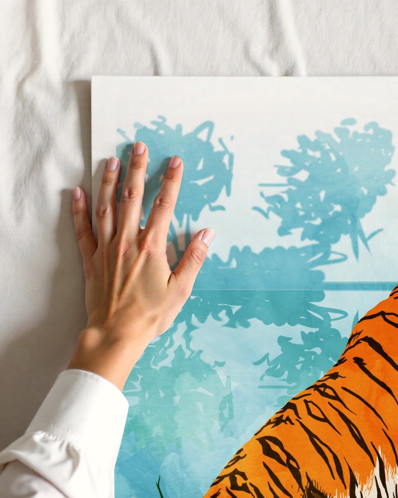 Shop jungle tiger wildlife forest small batch Art Print, Canvas Print, Commercial digital license & Instant download printable - exclusively available at 83oranges.com by artist Uma Gokhale India home banner