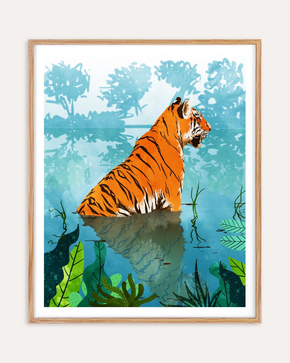 Shop Tiger Creek Forest Wildlife Art Print, Canvas Print - available at 83oranges.com by artist Uma Gokhale India