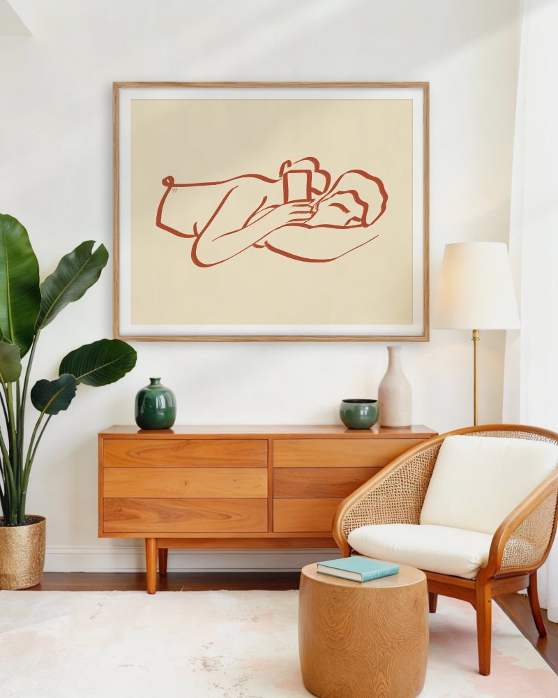 Perfect for bedrooms, reading nooks, living spaces, or any interior that values softness and human connection, this sketch pairs seamlessly with modern, Scandinavian, and contemporary décor. Its understated elegance makes it ideal for collectors drawn to minimalist art, figurative line drawings, and emotionally resonant wall art.